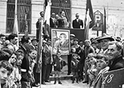 Barletta, 1° maggio inizio anni Sessanta. Un comizio in piazza Caduti: oratore Franco Conenna. Dinanzi al palco un quadro con l’effigie di Di Vittorio |
