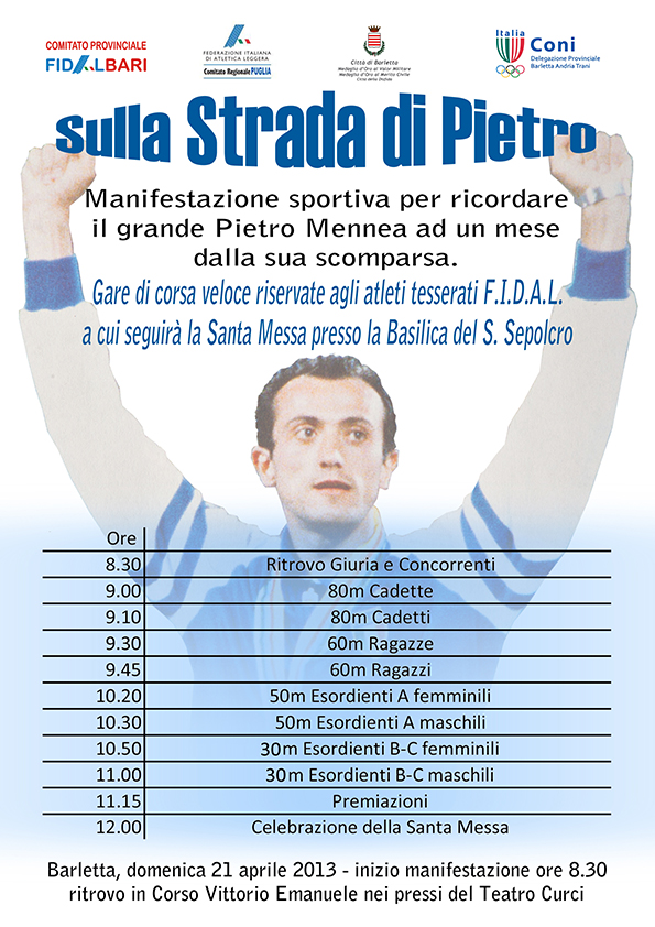 BARLETTA - Domenica 21 aprile 2013, a un mese dalla scomparsa, Pietro Mennea